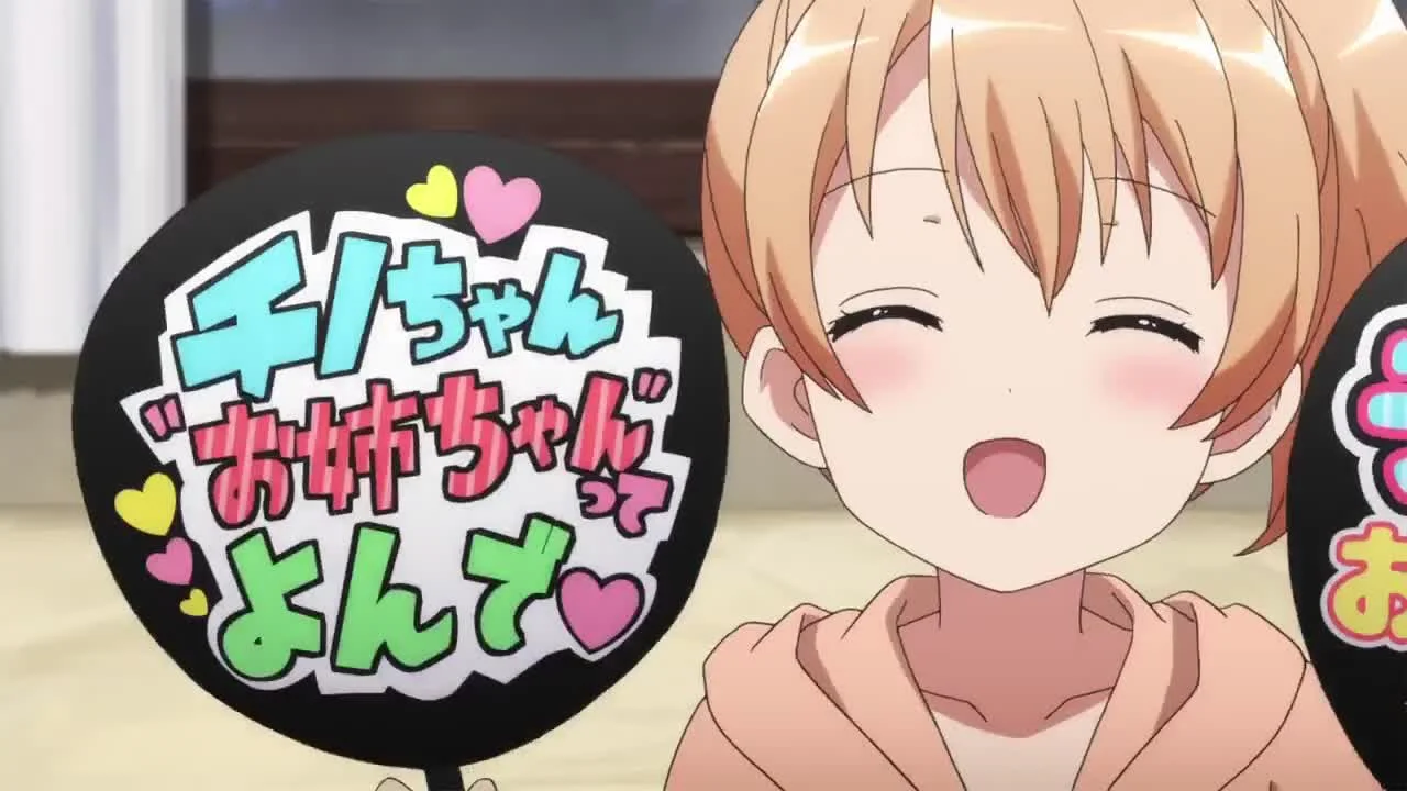 Чино Кафу готовится к выступлению на сцене. Правильная подготовка — залог успеха. И подруги Чино уже нашли отличный способ помочь — устроить турнир по караоке.