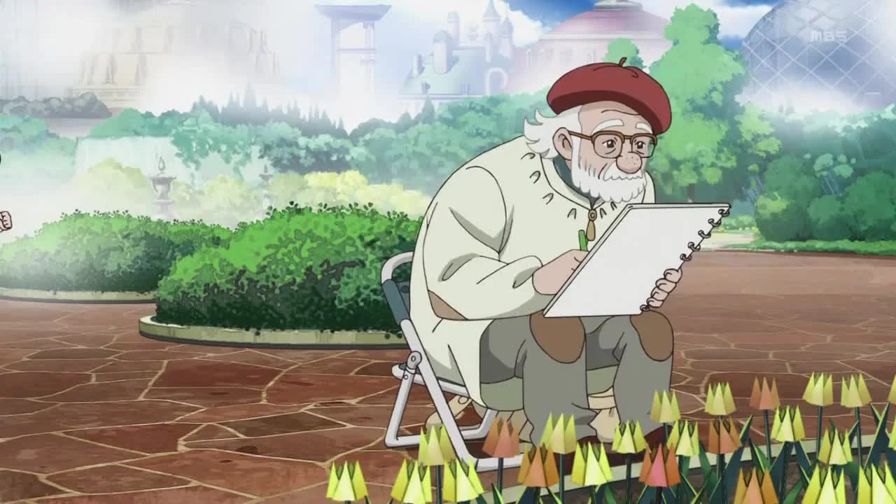 Маленькая девочка Куми живёт в мире огромных небоскрёбов, разумных машин и искусственной природы. Девочка любит проводить время на парковой площадке с фонтаном, где она играет со своей электронной собакой. Но однажды Куми встречает старика, который каждый день посещает парк. Он срисовывает искусственные цветы, придавая им сходство с настоящими. Старик рассказывает девочке, что он обнаружил «дыхание» живого тюльпана среди других цветов. И они вместе решают наблюдать за тем, как тюльпан растёт.